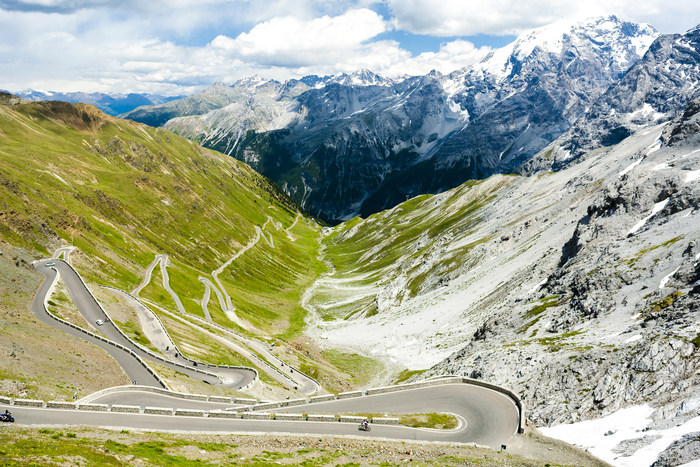 One of the most iconic Passo Stelvio passes, the crossing to the Dolomites. (approx. 300 km)